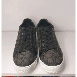 Coach Paddy Signature Logo Canvas Sneakers Size 8.5 B. Good used condition. The inside of the left shoe has peeling on the heel inside, otherwise the shoes are in excellent condition with no damage on the outside of either shoe.