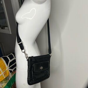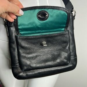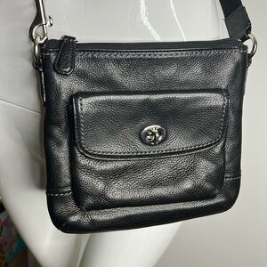 Coach Park Black Leather Crossbody Swingpack Bag Turn-Lock