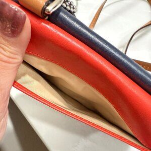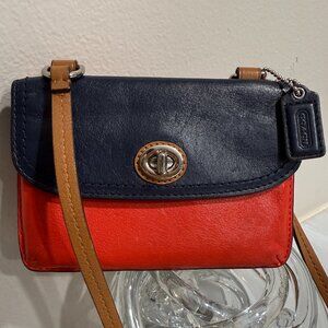 Coach Park Dylan Colorblock Wallet Crossbody Navy/Vermillion/Tan Leather Bag