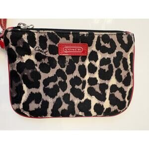 Coach Park Ocelot Small Wristlet Animal Print Leopard Black/Red Missing Charm