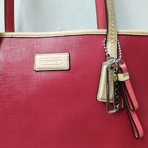 Coach Park Red Leather Double Handles Tote Bag