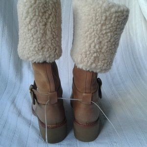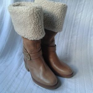 Coach Parka Boots Leather Suede Tan Sherpa Lined