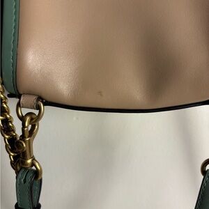 Stylish Coach crossbody bag in pink and tan. Perfect for any occasion with its elegant design and practical size.
