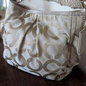 ✨ Coach Parker Op Art Monogram Shoulder Bag – Rose Gold Leather & Canvas 👜