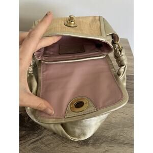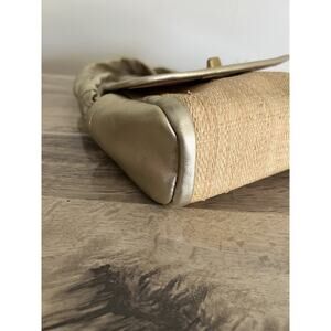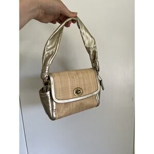 Coach Parker Straw Top Handle Handbag GOLD leather trim #42475