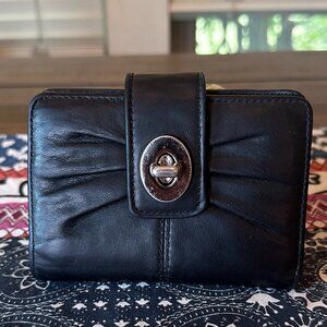 Coach Parker Vintage Leather Turnlock Small Wallet, Black and Grey, Used