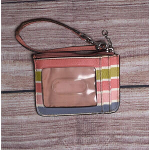 Coach Pastel Rainbow Wristlet Wallet | Coral Strap | ID Slot | Key Chain