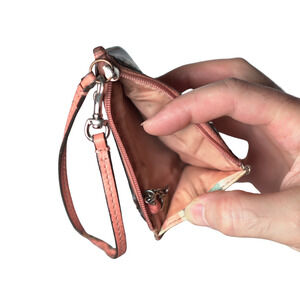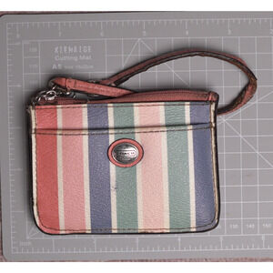 Coach Pastel Rainbow Wristlet Wallet w/ Key Chain Coral Leather Strap & Lining