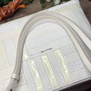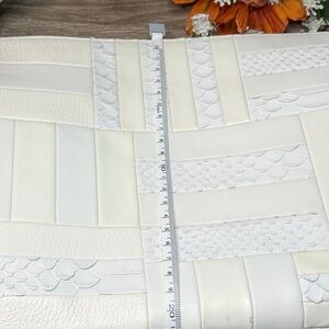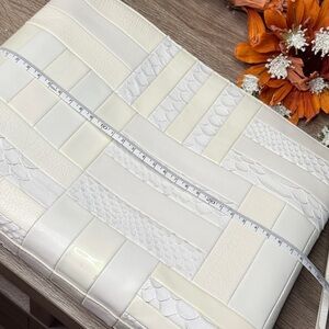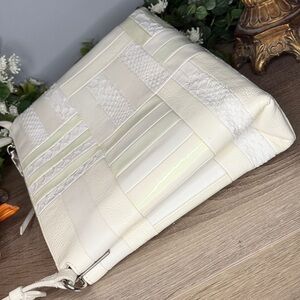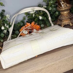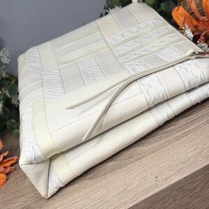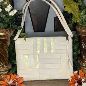 RARE Chic patchwork design. Crafted from luxurious cream leather croc embossed. Adjustable strap. Beautiful condition! Hang tag inside. Minor call out is small spot on top right front if you can see. I have not tried to get out however looks like a small smudge that would come out. Please see all plans ask questions as this is not new