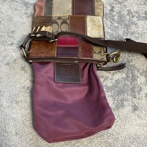 Coach Patchwork Swingpack Flat Crossbody Bag Suede Leather Signature F10439