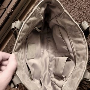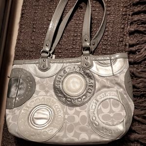 Coach Patchwork Tote circle pattern. EUC 14"W x 9"H x 3"D