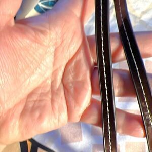 This wristlet was in too good of condition to just let go! The gold corner patches were peeling. I removed the gold and refinished with a textured brown glitter. Love the way it turned out! Strap is in great condition. No rips or stains Wristlet is now in great shape! Does not have a hang tag