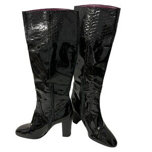 Coach Patent Leather Boots Rowan Snakeskin Embossed Cuff Size 6B