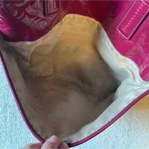 Coach Patent Leather Medium-Sized Tote Bag, Cranberry dark pink color