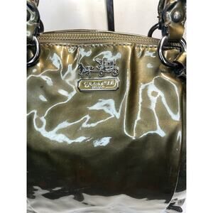 Coach Patent Leather Metallic Olive Green Tote Shoulder Bag