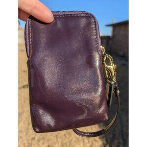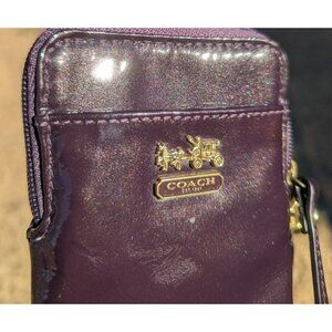 Coach Patent Leather Small Vertical Wristlet Pouch Wallet Purple