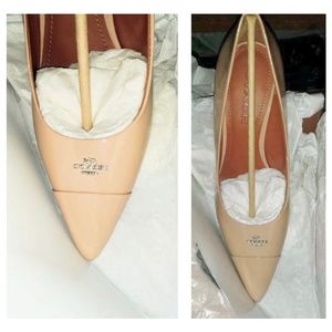 Coach Patrice Patent Leather Nude Pump Stiletto Heel Pointed Toe Signature Shoes
