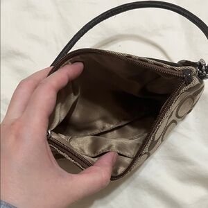 Elegant Coach wristlet with signature pattern. Measures 6.5” by 5”.
