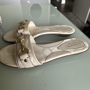 Coach Pattie Horsebit Off White Slide Sandals Size 5.5 F2370/B06 Signature Logo