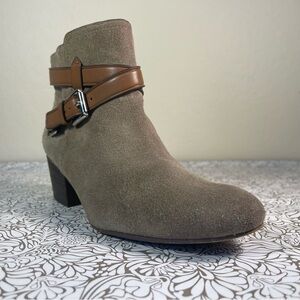 Coach ankle boots Pauline suede leather, brown straps and buckles
