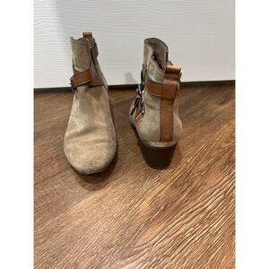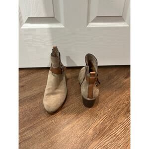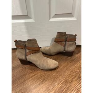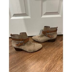 Coach Pauline Ankle Boots in Beige Suede/Tan Leather Women's Size 8