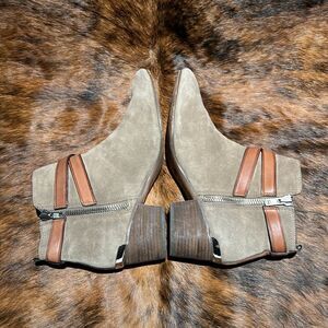 These ankle boots are in great preowned condition. Please see photos for details and feel free to ask any questions if interested. The heel measures 2 inches.