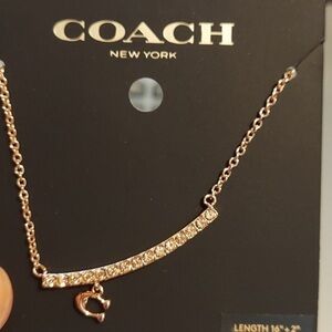 Coach Pave Bar Charm Frontal Necklace in Rose Gold