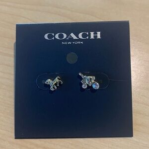 Coach Pave Horse And Carriage Stud Earrings - Gold Plated - NWT