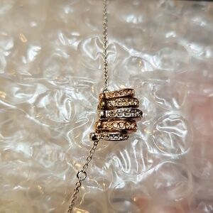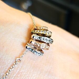 This elegant bracelet features a stunning combination of gold, rose gold and silver tones, perfect for adding a touch of sophistication to any outfit.
