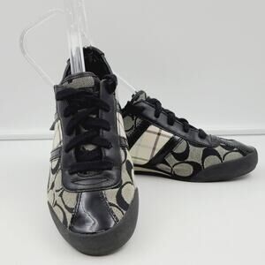 Coach Paxton 6.5M A1439 monogram logo black flats comfort Sneakers EUC