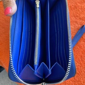 Coach Pebble Blue leather wallet with detachable wrist strap. New condition never used!