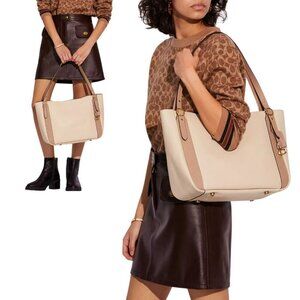 Coach Pebble Leather Alana Shoulder Tote In Colorblock - Ivory Multi