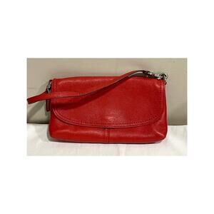 Coach Pebble Leather Clutch Shoulder Bag Wallet Red