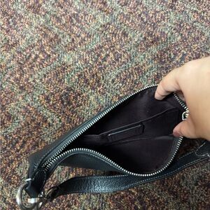 Chic Coach shoulder bag in pebbled black leather. Features a sleek design with silver-tone hardware. Perfect for everyday use.