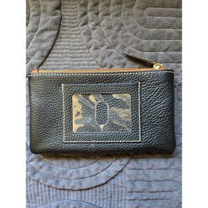 Coach Pebbled Leather Black Zip Around Wallet With Card Holder Slot