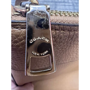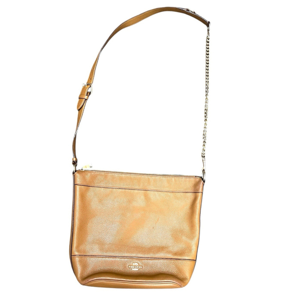 coach leather bag, tan crossbody, camel shoulder purse, chain strap bag, pebbled leather handbag, classic coach style, minimalist neutral bag, everyday tote, authentic coach