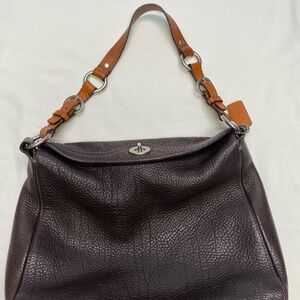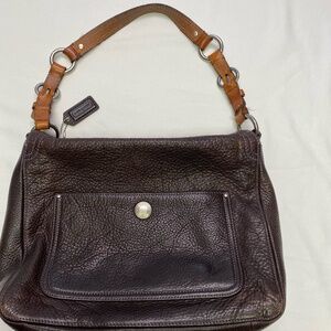 Coach Pebbled Leather Shoulder Bag – Dark Brown