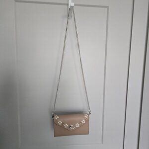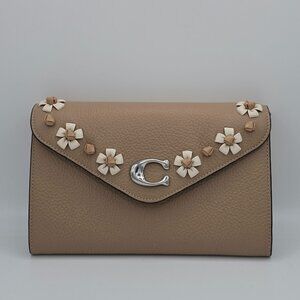 Coach Pebbled Leather Taupe Tammie Crossbody with Ivory Floral Whipstitch