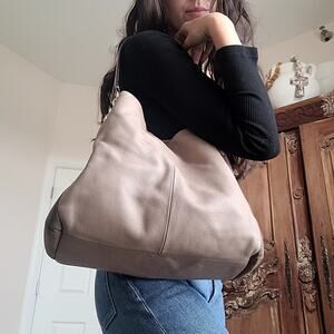 Coach Pebbled Soft Leather Suede Madison Phoebe Taupe Purse Shoulder Bag