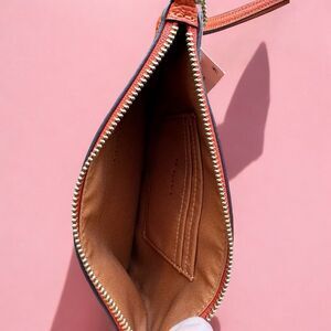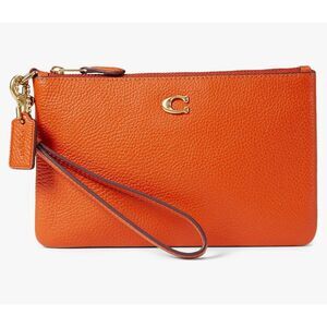 Coach Pebbled Sun Orange Leather Wallet Wristlet New