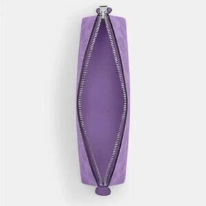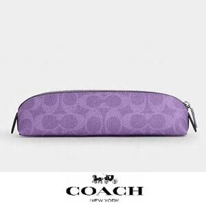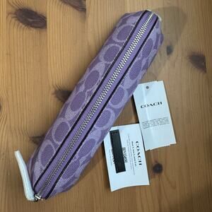 Coach Pencil Case In Signature Canvas Brand new with tags 100% Authentic Color: Silver/ Iris Printed coated canvas and smooth leather Zip closure, fabric lining 8" (L) x 2" (H) x 2" (W) Style No. CZ206 Price is firm