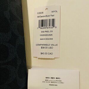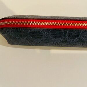 Coach Pencil Case Signature Canvas CZ206 Slim Zip blue denim, red