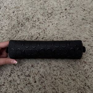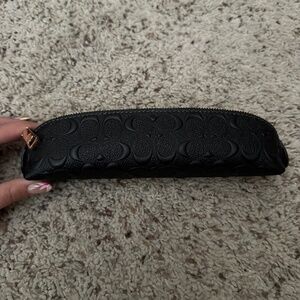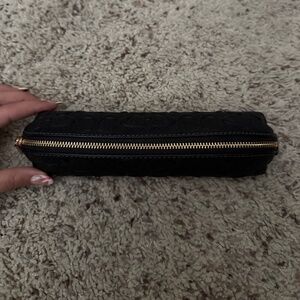 Pencil case: Signature smooth calf leather with raised monogram Zip closure, fabric lining 8" (L) x 2" (H) x 2" (W)