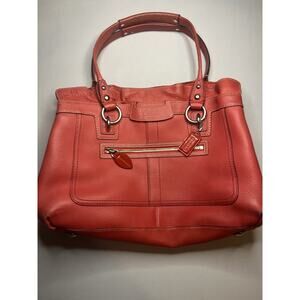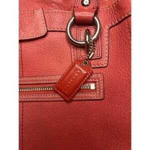 The Coach Penelope 13160 Satchel in red pebbled leather is a stylish shoulder bag designed for women. Made from high-quality leather in a bright red color, this bag exudes sophistication and elegance. With the renowned Coach brand name, you can be sure of the quality and craftsmanship of this fashionable accessory. Perfect for carrying your essentials, this satchel is the ideal choice for any woman looking to make a statement with their fashion choices.