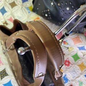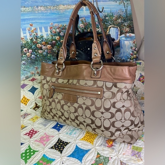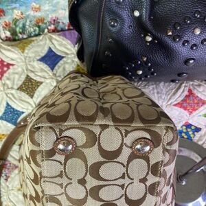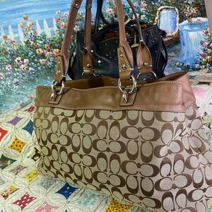 Beautiful lightweight 3 compartment tan and brown signature jacquard with leather trim