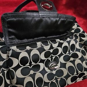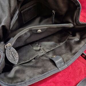 Interior Black fabric lining with zipper pocket and two multi function slip pockets.