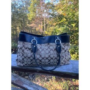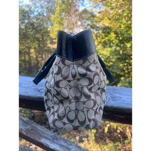 Coach Penelope Signature shoulder bag in brown monogram canvas and black leather trim F15534