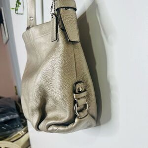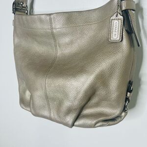 Coach Penelope Silver Gold Metallic Pebbled Leather Shoulder Hobo Bag