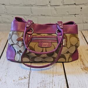 Coach Penelope Tote Bag | Khaki & Berry Purple | Style 14422