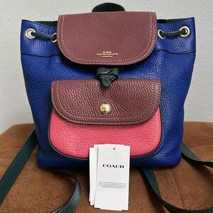 Coach Pennie Backpack 22 Pebble Leather In Colorblock Blue Brown Pink Green. Excellent condition! No flaws. Comes with original tags. Tags are not attached and bag is not new.